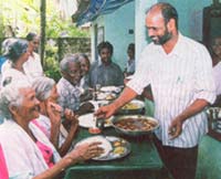 As a driver at the Cochin Urban Leprosy Treatment and Education Scheme (CULTES) for 15 years, Judeson always had a soft corner for leprosy patients. 7 years ago, he was asked to bring an old patient from her home where she was a virtual prisoner. What he saw at the house astounded Judeson. “A completely naked and emaciated old lady was lying on the floor, wallowing in dirt. The wound on her leg had worms wriggling out of it.” As the woman’s daughter just threw a cloth to cover her, Judeson lifted her and brought her out to face sunlight after so many years. With a trembling voice she said, “You are great. You could touch this stinking body. No one else had such compassion for me. You will scale greater heights.” That incident was a turning point in his life. He decided to dedicate his life to wipe tears and feed empty stomachs. Thus, starting from his CULTES quarters in 1997, Judeson started distributing food packets to the needy. The effort soon touched a chord in the hearts of neighbours and voluntary workers and helped him start Food Centres. Sehiyon Food Centres, as they are called, feed any poor visitor on the premises one meal everyday free of cost. Such centres have now spread to atleast 8 other places in Kochi. While food is served in Sehiyon during all other days, on Sundays about 750 food packets are distributed to the needy. On the occasion of the 5th anniversary, the Centre started a Mobile Bath programme to give instant bath to the vagabonds found in the streets. Later such persons are led to rehabilitation centres. For 15 years, Judeson has been bathing leprosy patients with bare hands. His faith in the immunity stems from a greater faith in the Illimitable Power. “This is a task that God has entrusted to me. Nothing untoward will happen from this,” he says.